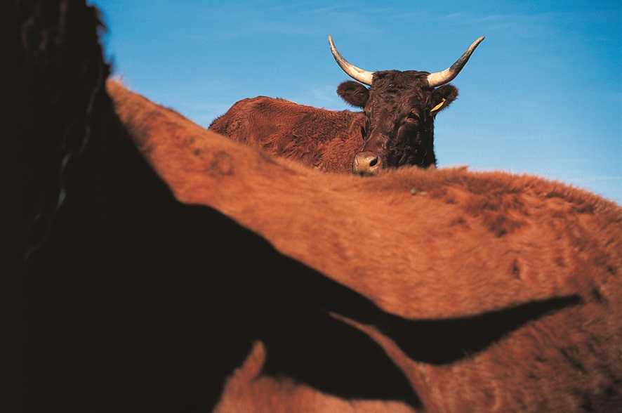 La Salers produit une viande fine, avec un magnifique persillé. Les caractéristiques rustiques de la race lui permettent de produire du gras naturellement, et notamment du gras intramusculaire ce qui lui confère une saveur sans égal.
